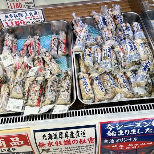 「新鮮魚介を市場の安さで プロも通う御徒町駅前の専門店 吉池」でしょう、ユニクロと同じビル。 海鮮以外にもいろいろ売っていて、品揃えの楽しいスーパー的な感覚でも使えるでしょう。