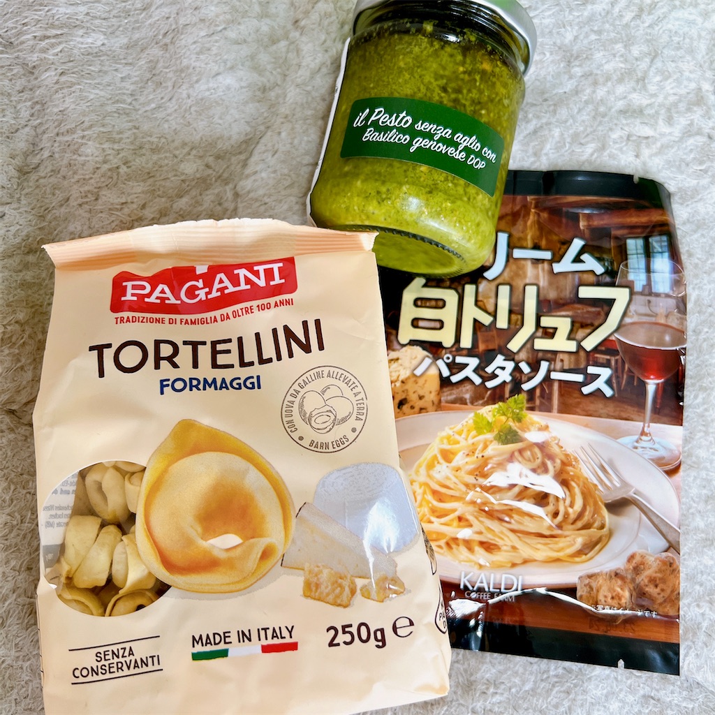 カルディで買ってきたでしょう、トルテリーニとパスタソースたち。